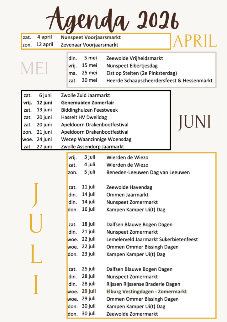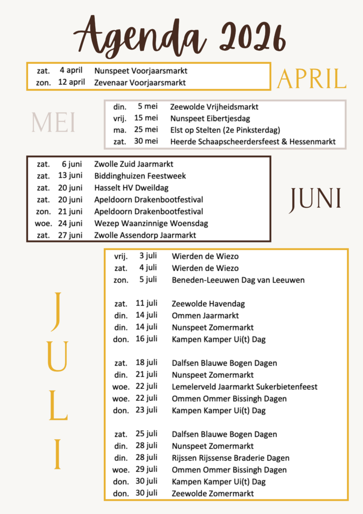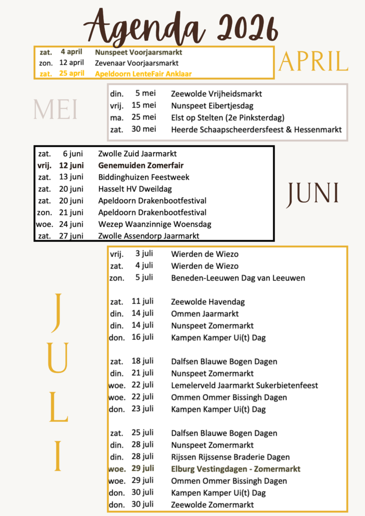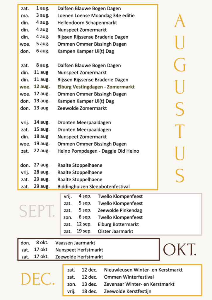 Wil je alle informatie over de markten die nog gaan komen? Kies dan voor onderstaande knop om ons actuele aanbod in te zien.